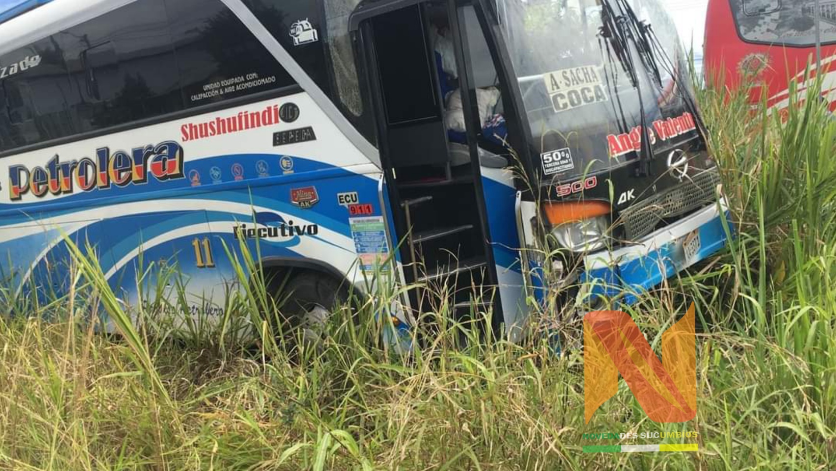 Aproximadamente a las 10h30 ocurrió un choque entre la unidad 11 de la cooperativa de transporte de pasajeros Petrolera y un camión, en la parroquia San Pedro de los Cofanes, recinto Jivino Verde